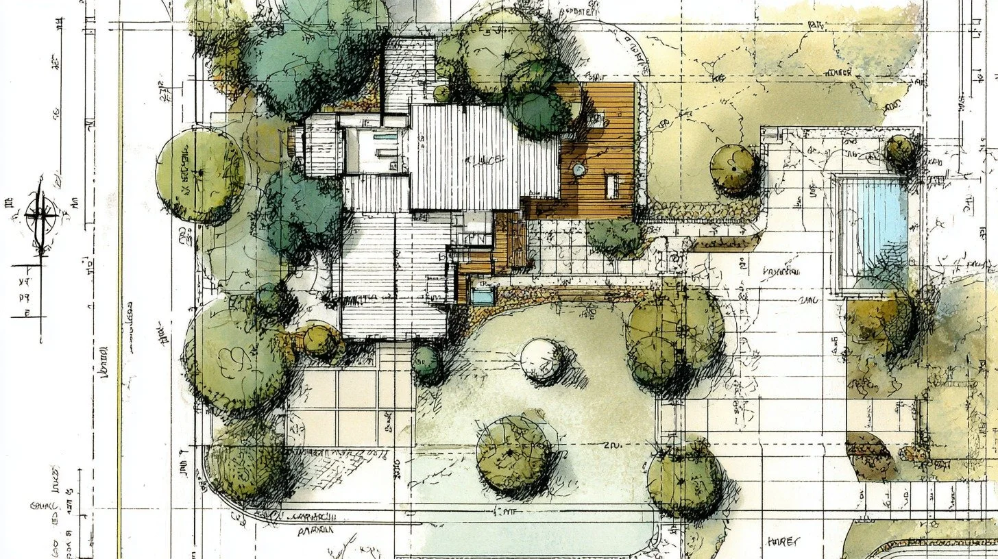 Show how your building fits within the entire site, including driveways, landscaping, and surroundings.